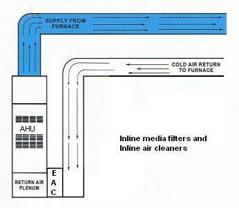 The Media filter The next step up in air filtration is the 4" or 5" thick media filter. These filters are in-line between your furnace, or air handler, and the return air ducting. 100% of the air circulating through your comfort system passes through this filter.